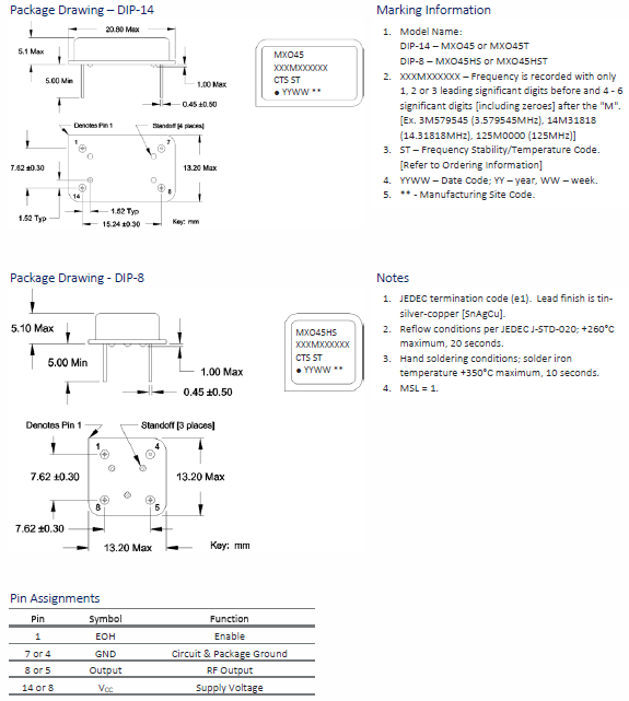 MXO45-2I-8M0000 | CTS晶振 | MXO45 | 8MHz | 5V | ±100ppm | -20°C ~ 70°C |