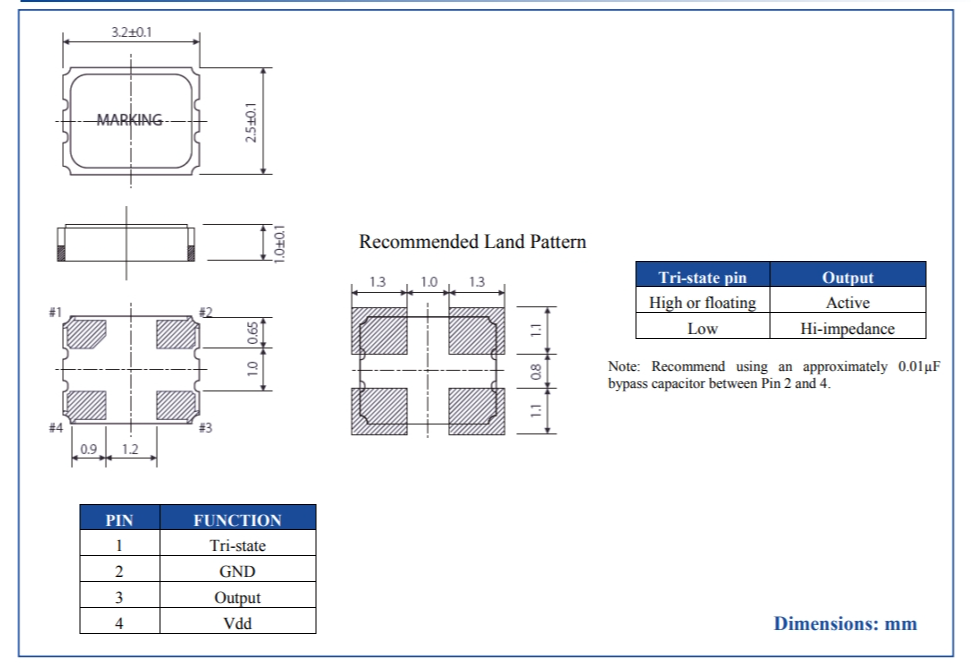 Size/Dimension尺寸 | 3.2 x 2.5 x 1.0mm | 最小包裝數MPQ: | 1000 |