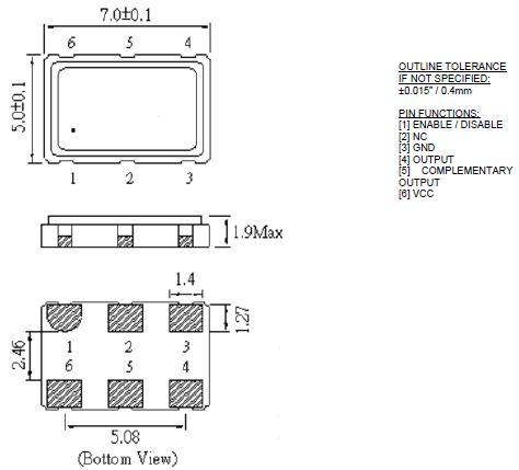 Size/Dimension尺寸 | 7.00mm x 5.00mm | 最小包裝數(shù)MPQ: | 1000 |