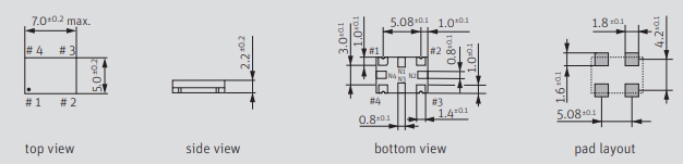 Size/Dimension尺寸 | 7.00mm x 5.00mm | 最小包裝數MPQ: | 1000 |