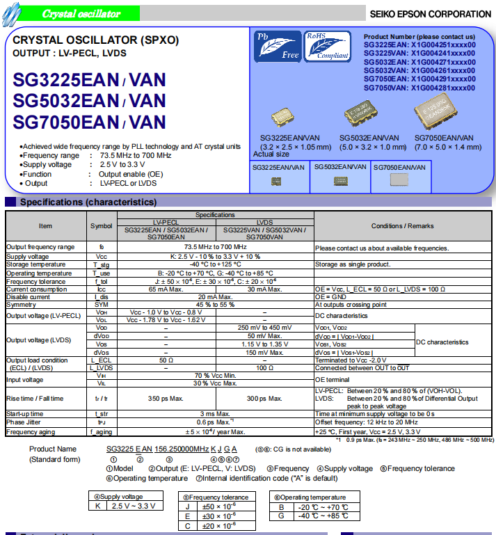 X1G0042610033 | SG5032VAN | 156.250000 MHz | 5.00 x 3.20 x 1.20 mm | LVDS |