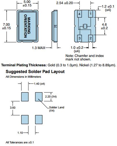 Ecliptek日蝕EA5070晶振,EA5070GA14-6.000M石英晶體諧振器,EA5070GA30-6.000M,7050晶振,尺寸圖