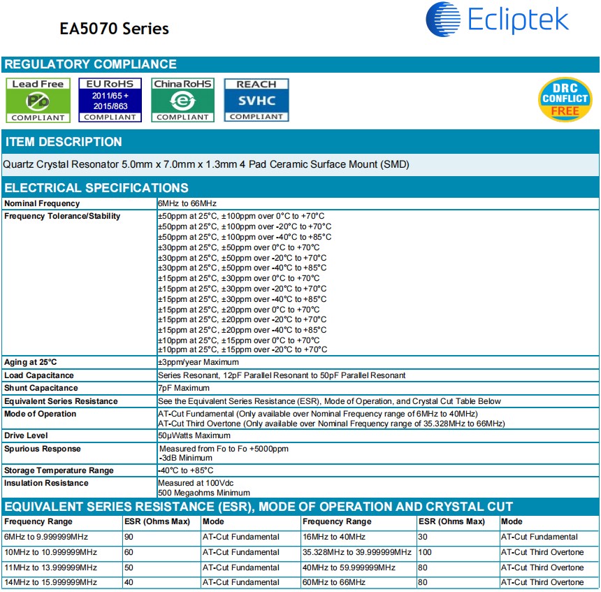 Ecliptek日蝕EA5070晶振,EA5070GA14-6.000M石英晶體諧振器,EA5070GA30-6.000M,7050晶振,參數(shù)圖