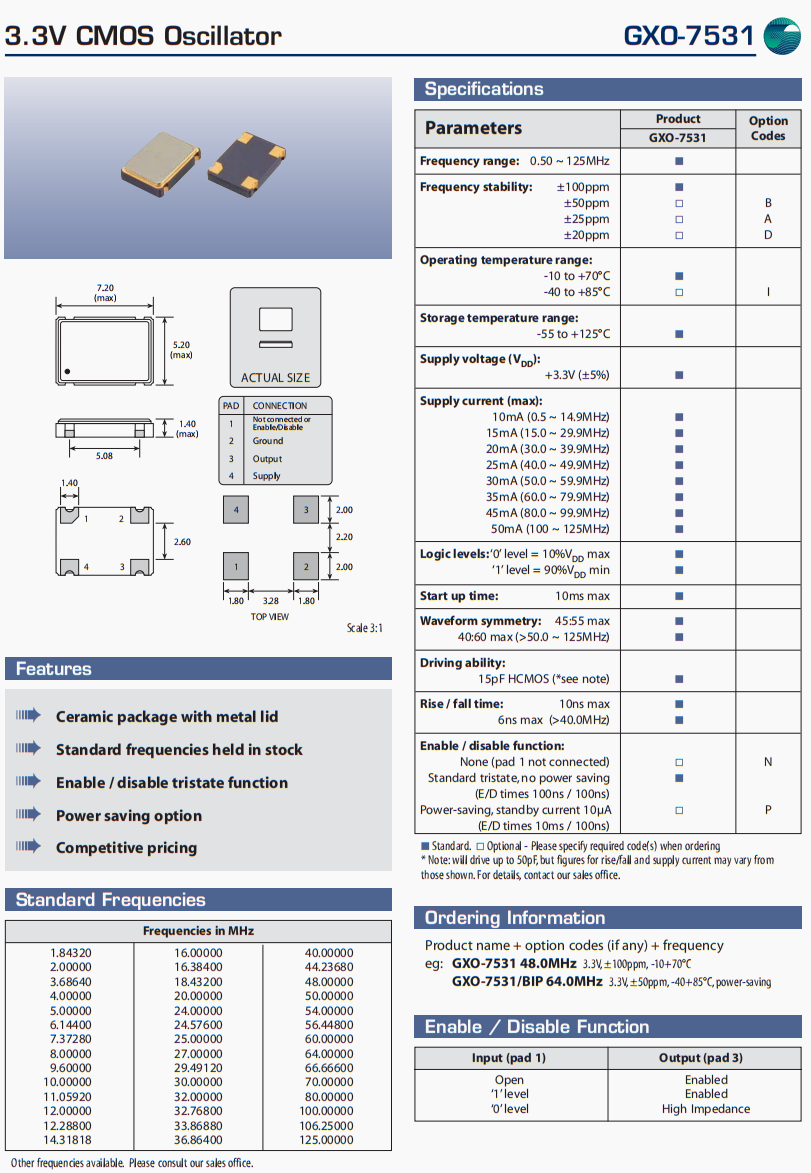 頻率穩定度 | ±100ppm,±50ppm,±25ppm,±20ppm |
