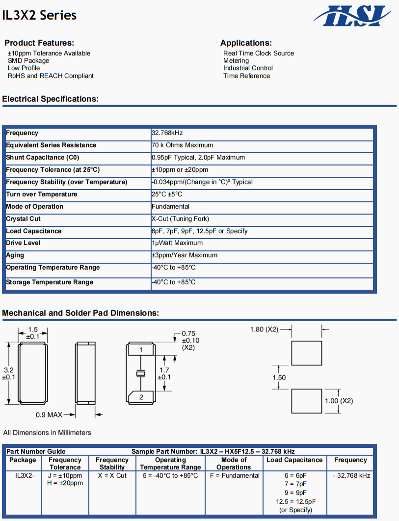ILSI美國進口晶振,IL3X2晶振,IL3X2-HX5F12.5-32.768KHz服務器晶振