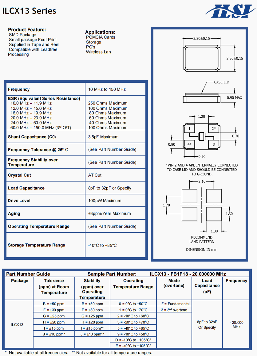 ILCX13-FF5F10-20.000MHZ | ILSI | ILCX13 | 20 MHz | ±30ppm | ±30ppm | 10pF |
