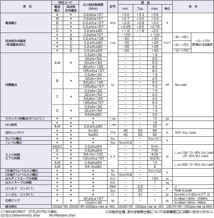 DS0751SR,SMD有源晶振,日本KDS振蕩器,小型SMD有源晶振,從最初超大體積到現(xiàn)在的7050mm,6035mm,5032mm,3225mm,2520mm體積,有著翻天覆地的改變,體積的變小也試產(chǎn)品帶來了更高的穩(wěn)定性能,接縫密封石英晶體振蕩器,精度高,覆蓋頻率范圍寬的特點(diǎn),SMD高速自動(dòng)安裝和高溫回流焊設(shè)計(jì),Optionable待機(jī)輸出三態(tài)輸出功能,電源電壓范圍:1.8V?5 V,高穩(wěn)定性,低抖動(dòng),低功耗,主要應(yīng)用領(lǐng)域:無線通訊,高端智能手機(jī),平板筆記本W(wǎng)LAN,藍(lán)牙,數(shù)碼相機(jī),DSL和其他IT產(chǎn)品的晶振應(yīng)用,三態(tài)功能,PC和LCDM等高端數(shù)碼領(lǐng)域,符合RoHS/無鉛.