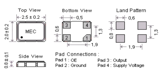 Type 類型 | TCXO | Package Height高度 | 0.8mm |