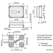 日本muRata晶振HCR2016,XRCGB24M000F0G00R0無源晶振,尺寸圖