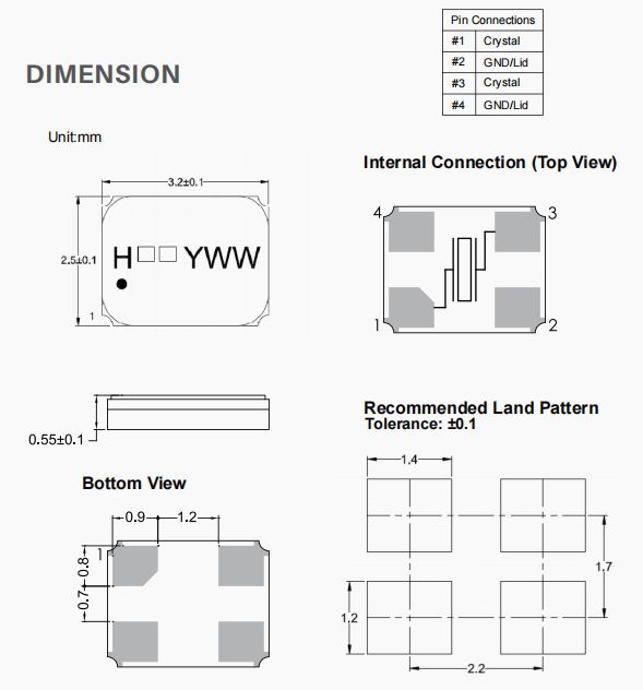 X3S012000BK1H | 加高晶振 | HSX321S | 12 MHz | ±20ppm | 20pF | -10°C ~ 60°C |