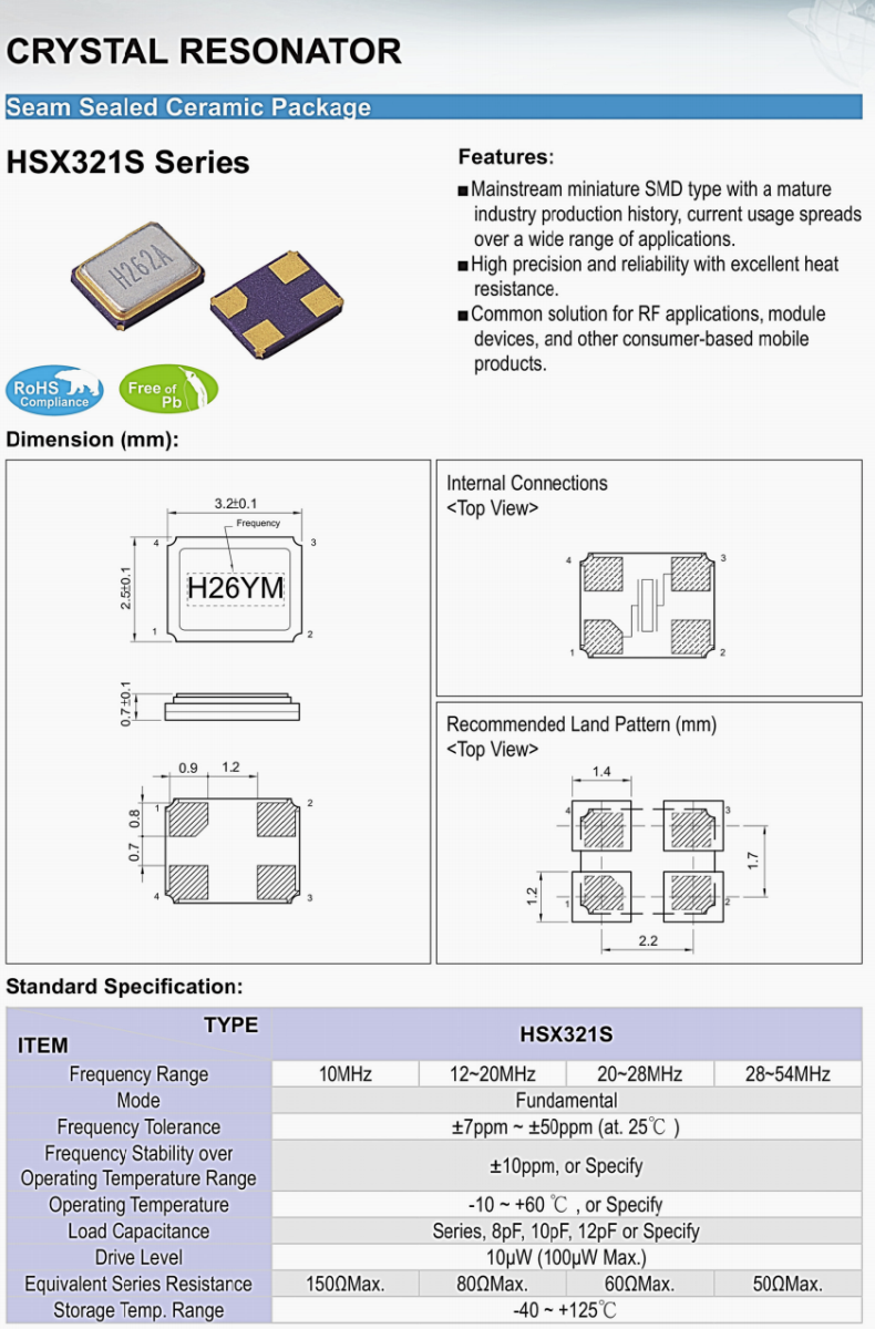 X3S026000BZ1HZ-HU | 加高晶振 | HSX321S | 26 MHz | ±10ppm | 12pF | -20°C ~ 70°C |