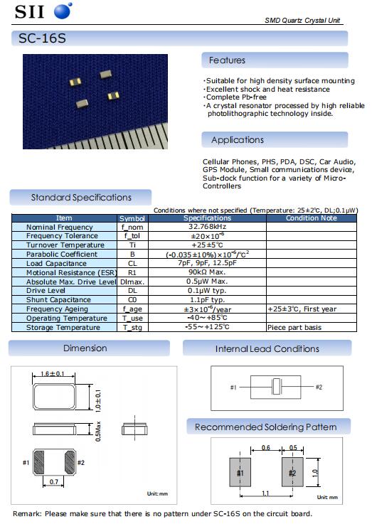 Q-SC16S03220C5AAAF | 精工晶振 | SC-16S | 32.768kHz | ±20ppm | ±20ppm | 12.5pF |