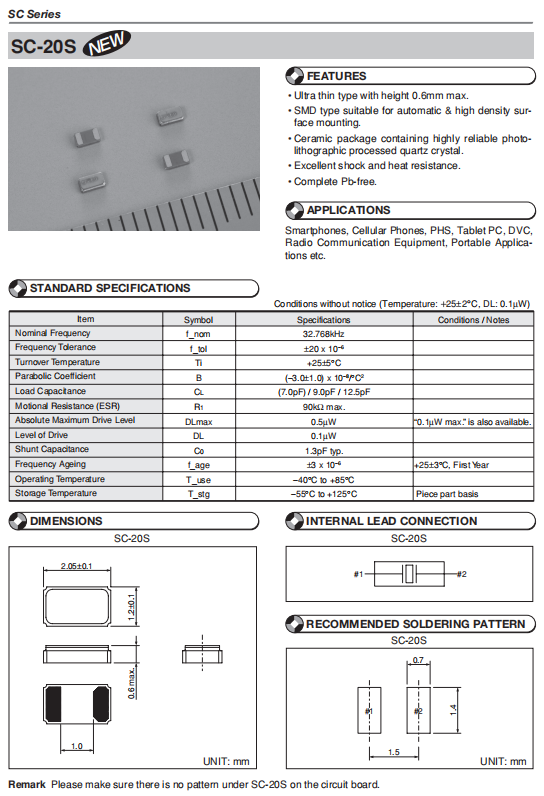 Q-SC20S03220C5AAAF-32.768KHz晶振-12.5pf-2012mm 特點