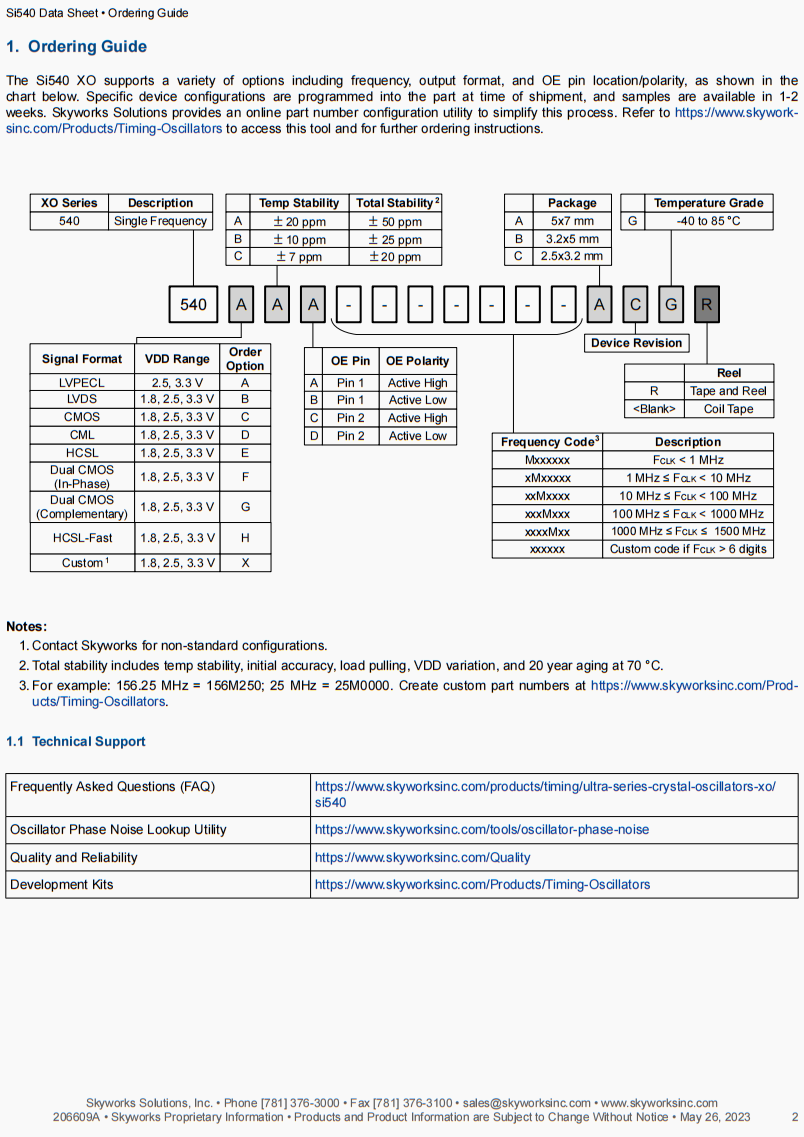 540CE100M000DG | Skyworks晶振 | Si550 | VCXO | 100 MHz | CMOS | 3.3V |