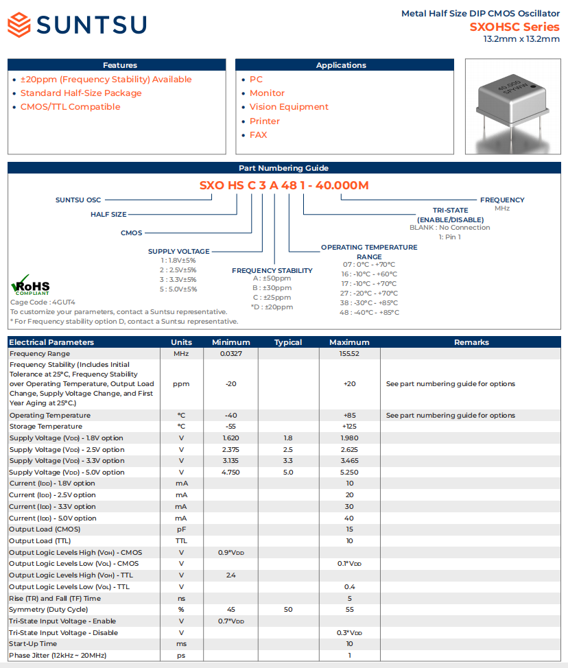 Suntsu晶振 Suntsu石英貼片晶振