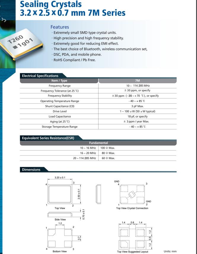 7M-16.000MAAJ-T,16MHz,-20~70°C,3225mm 特點